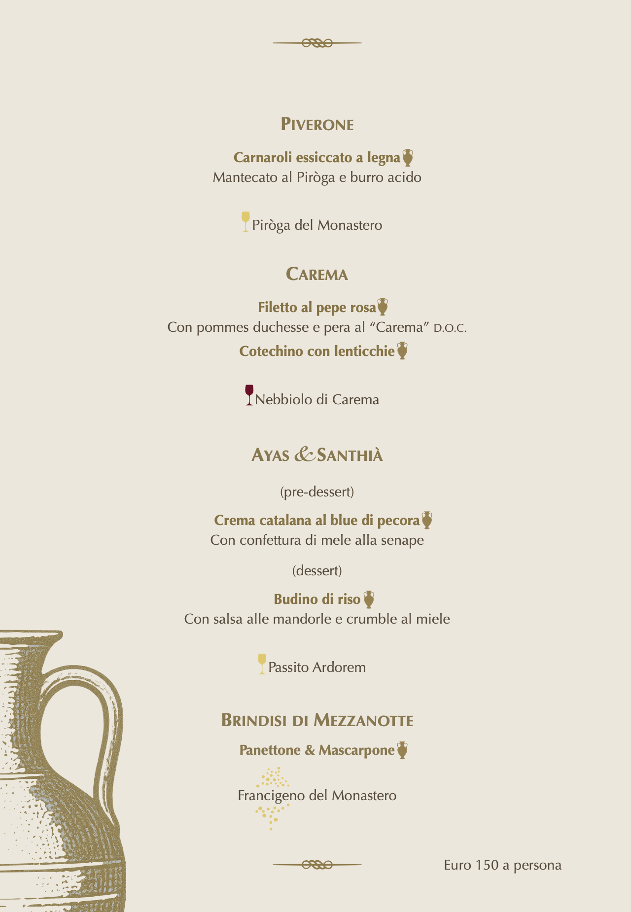 - Menù adulti: 150€ a persona